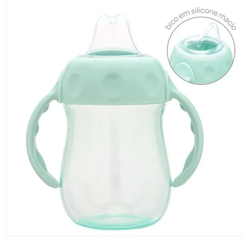 Este copo, por ter alça, permite que seu bebê fique seguro ao aprender a beber sozinho, pois suas alças macias e confortáveis permitem que ele adira com mais facilidade à mão pequena do seu bebê.
