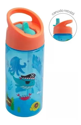 Além de linda, essa Garrafinha tem capacidade de 380ml e possui um incrível design ergonômico e uma alça que facilita a criança segurar a garrafinha e pendurar na mochilinha, carrinho e outros lugares.