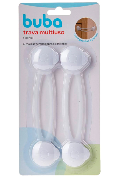 A trava multiuso flexível é ideal para proteger os bebês, impedindo que abram portas e gavetas, dando maior segurança para evitar acidentes.